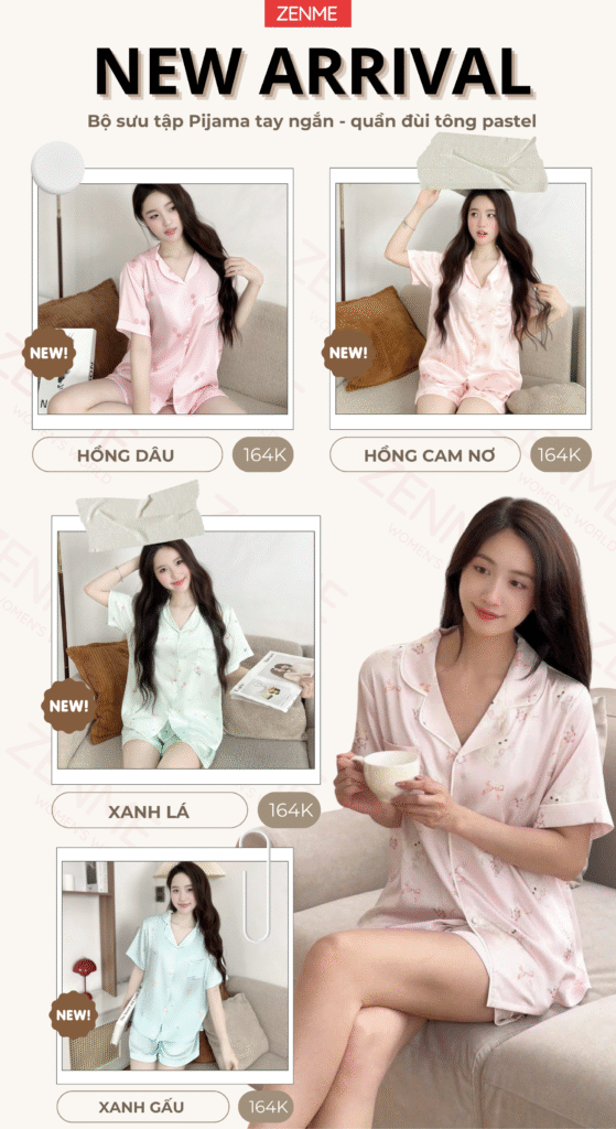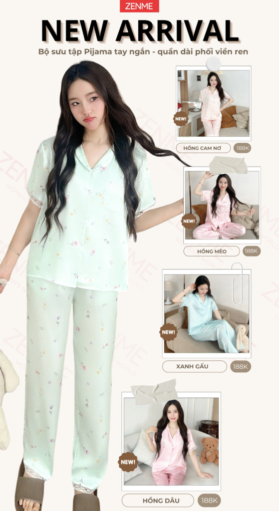 Bộ Đồ Ngủ Pijama Lụa Nữ Zen Me Chất Latin Cộc Đùi Mềm Mát Họa Tiết Pastel PJC0825