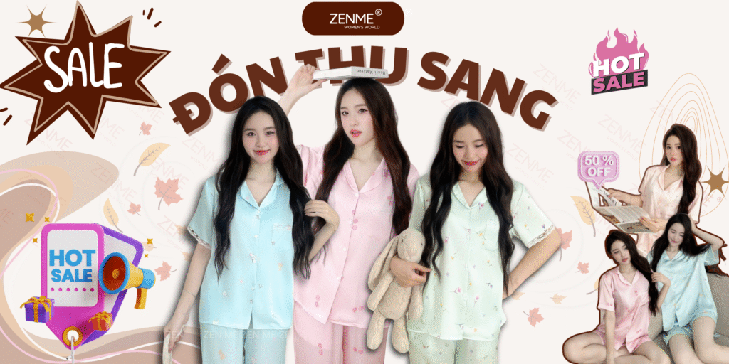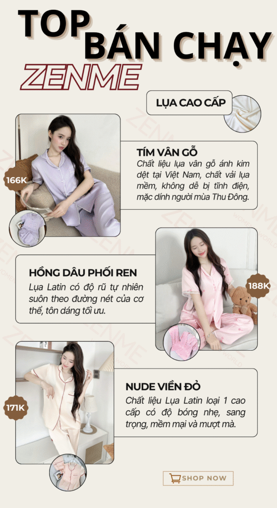 Đồ bộ ngủ nữ thu đông pijama tay dài quần dài lụa latin Việt Nam cao cấp Zen Me Women’s World PJDD1123